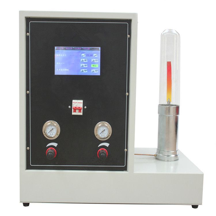 產品特點:  JF-5型全自動氧指數儀采用全彩觸摸屏控製,隻需在觸屏上設定氧濃度值,程序便會自動調節到氧濃度平衡並發出嘀的聲音提示,免去了人工調節氧濃度的麻煩;采用閉環控製,測試當中氧濃度漂移程序自動調節回到目標值,大大提高了測試精度。